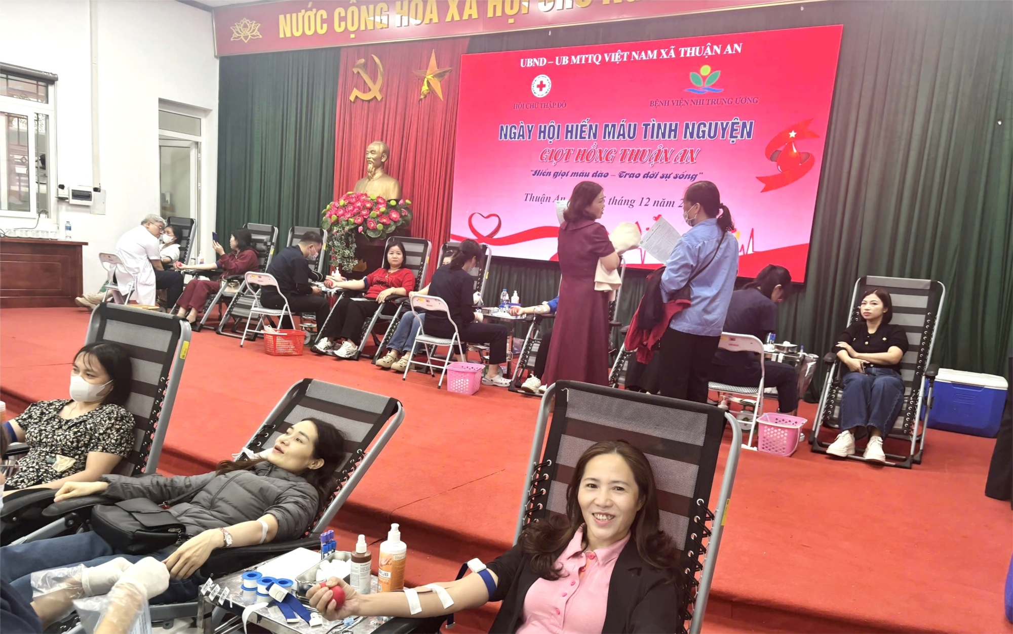 Hưởng ứng phong trào hiến máu tình nguyện do Ban Chỉ đạo vận động Hiến máu tình nguyện xã Thuận An phát động, sáng ngày 05/12/2025, tập thể cán bộ, giáo viên và nhân viên Trường THCS Phú Thị đã tích cực tham gia chương trình hiến máu tại điểm tiếp nhận của xã.