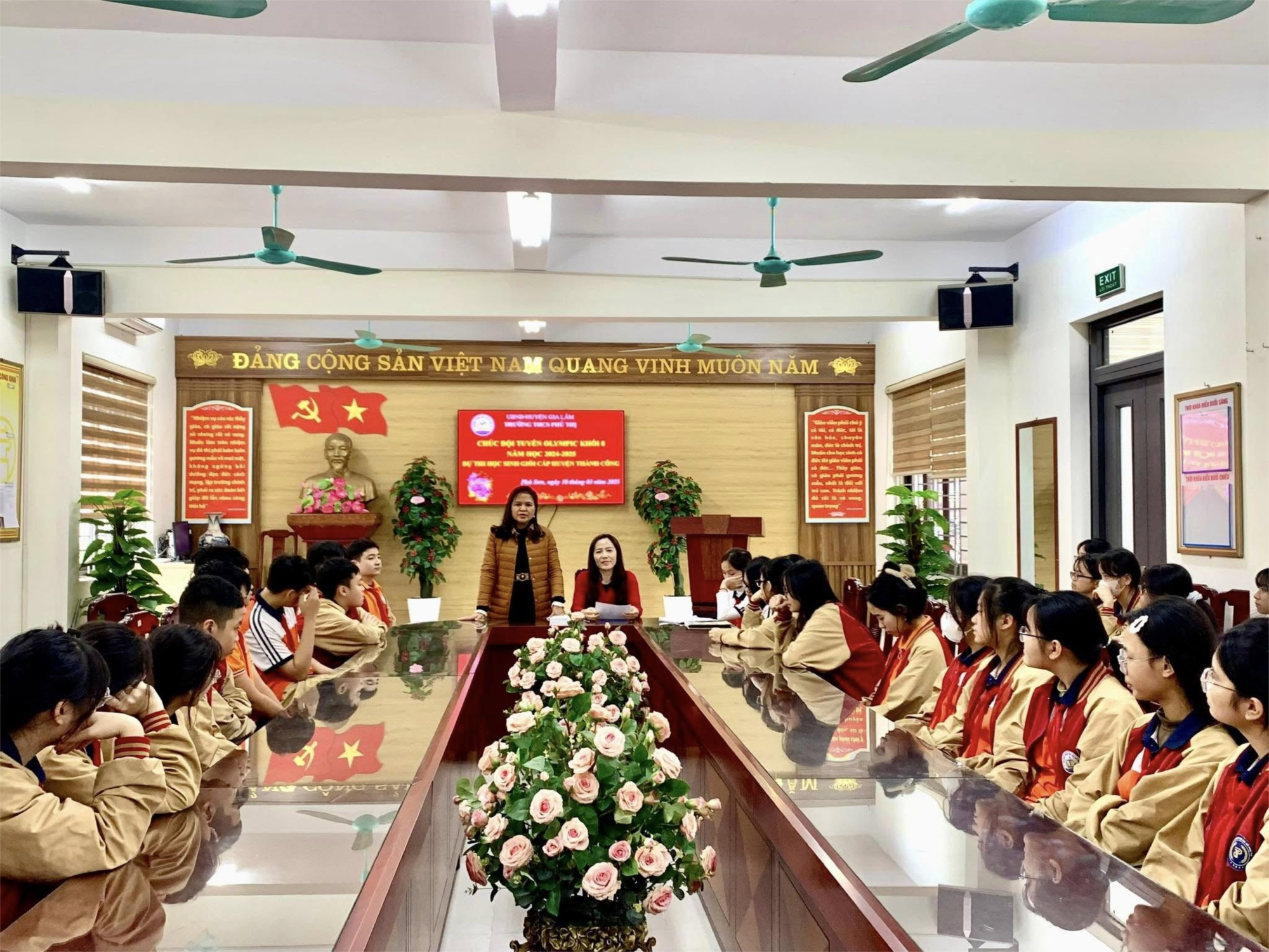 Ngày 18/3/2025, trường THCS Phú Thị đã tổ chức buổi “Gặp mặt động viên học sinh dự thi kỳ thi học sinh giỏi Olympic lớp 8 năm học 2024- 2025”. Buổi gặp gỡ có sự tham dự của cô giáo Vũ Thị Lan Anh- Bí thư chi bộ, Hiệu trưởng nhà trường, cô giáo Tạ Thuý Hà - Phó Bí thư chi bộ, phó Hiệu trưởng nhà trường đặc biệt là sự có mặt của các em học sinh tham dự kỳ thi học sinh giỏi.