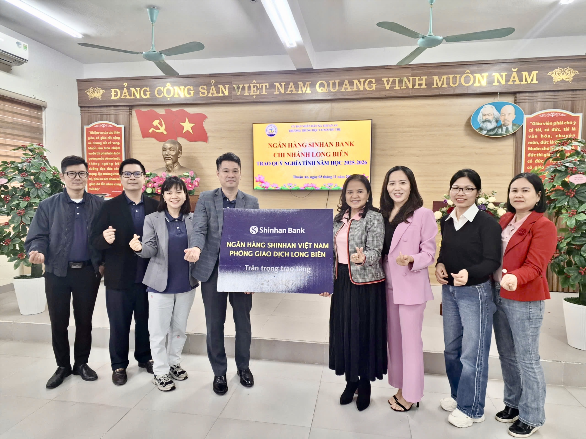 📌 Thay mặt nhà trường, Ban Giám hiệu Trường THCS Phú Thị trân trọng cảm ơn Ngân hàng Shinhan Bank – Chi nhánh Long Biên đã luôn đồng hành, quan tâm và hỗ trợ nhà trường.