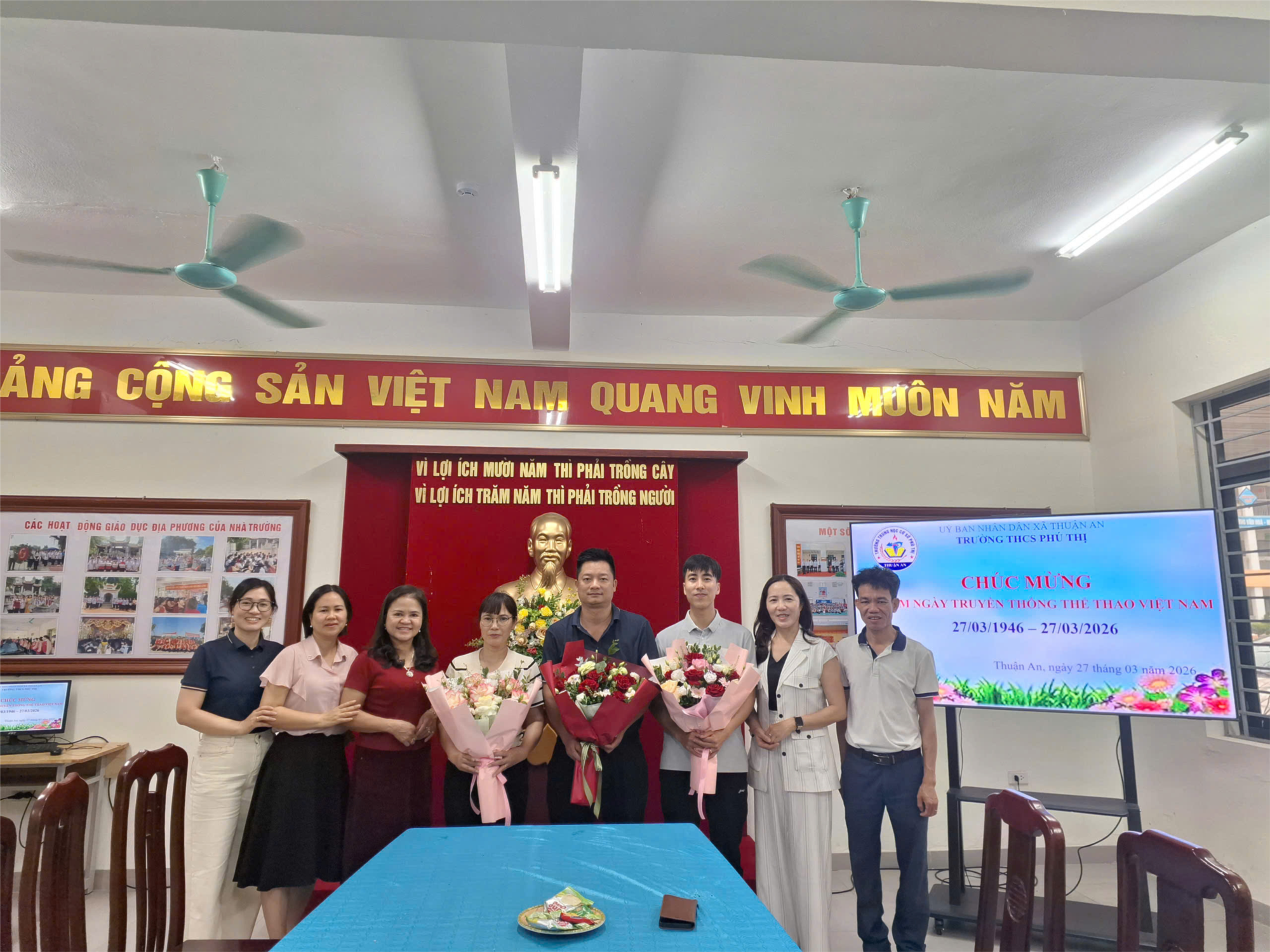 💐 Trong chương trình, nhà trường đã tổ chức chúc mừng và tặng hoa các thầy cô giáo bộ môn Thể dục – những người luôn tận tâm, nhiệt huyết, góp phần quan trọng trong việc phát triển phong trào thể thao của nhà trường.