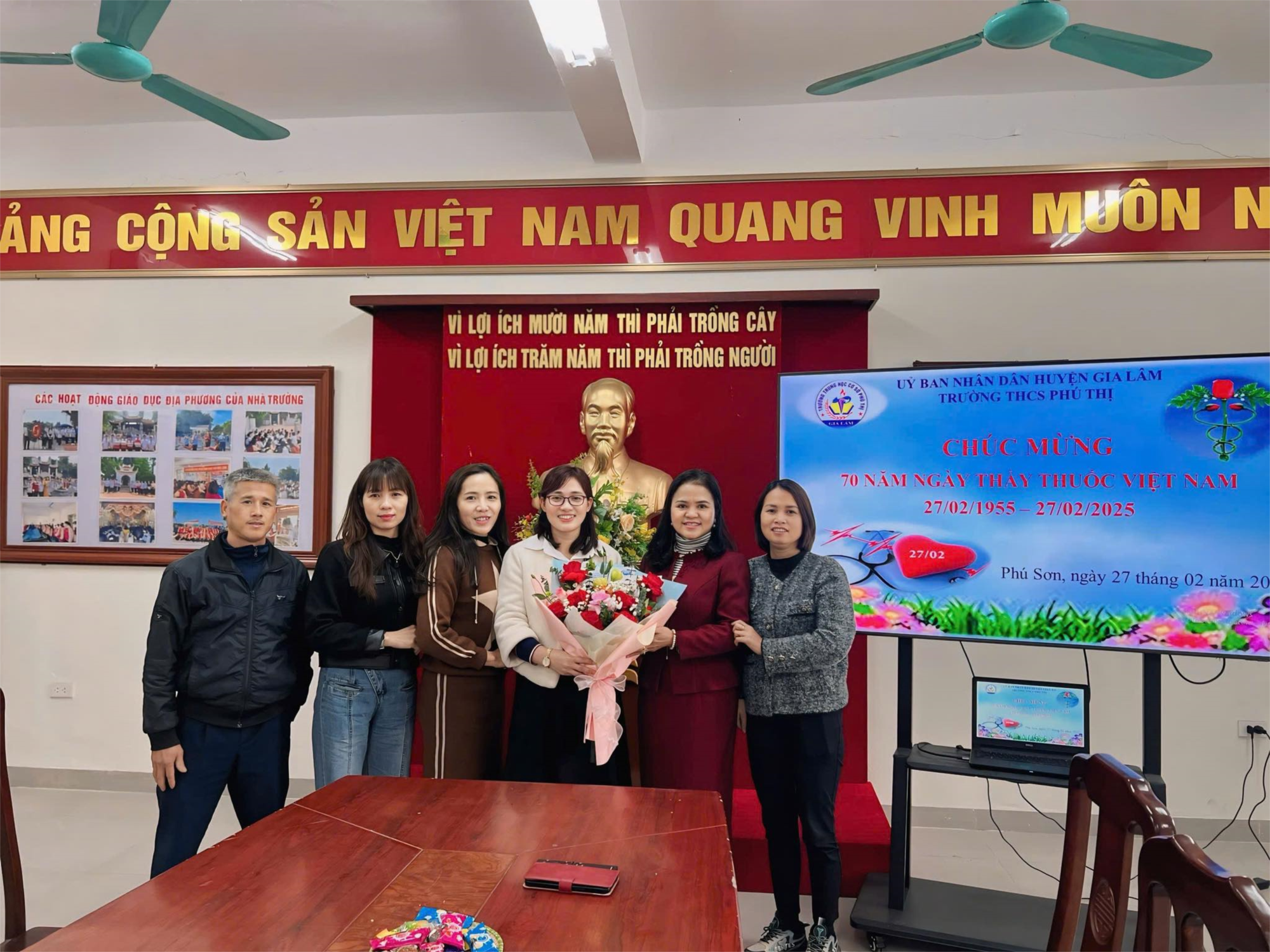 Nhân kỉ niệm 70 năm Ngày Thầy thuốc Việt Nam (27/02/1955 - 27/02/2025), để bày tỏ sự trân trọng, tôn vinh, tri ân người thầy thuốc, trường THCS Phú Thị tổ chức gặp mặt, chúc mừng, động viên đồng chí Nguyễn Hồng Ánh - cán bộ y tế nhà trường – người thầy thuốc thầm lặng. Xin kính chúc đồng chí và gia đình luôn mạnh khỏe, hạnh phúc và dành nhiều sự quan tâm, chăm sóc sức khoẻ hơn nữa cho giáo viên và học sinh nhà trường.