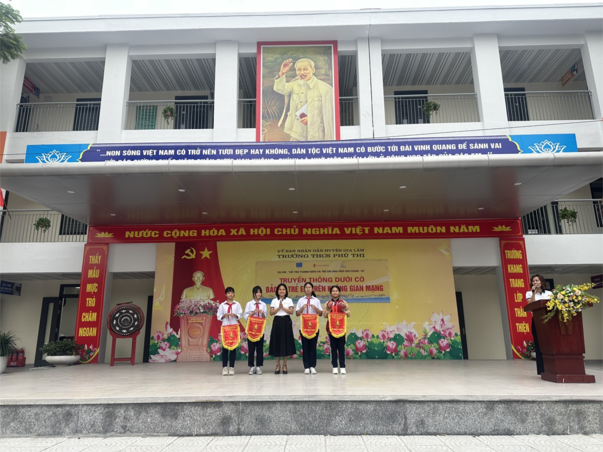 . Không thể phủ nhận những lợi ích mà các loại máy tính hoặc thiết bị thông minh có kết nối mạng internet mang đến cho các em như phục vụ học tập, nghiên cứu trao đổi trực trực tuyến... Song những cạm bẫy từ mạng xã hội cũng đưa đến không ít những vụ việc đau lòng gây ra những lo lắng, bất an cho các phụ huynh chính vì vậy vấn đề bảo vệ trẻ em trên không gian mạng là yêu cầu cấp thiết để tạo nên môi trường lành mạnh cho sự phát triển toàn diện của thế hệ tương lai của đất nước. Sáng ngày 23/10/2023 trường trung học cơ sở Phú Thị phối hợp với ban Dự án hỗ trợ thanh niên và trẻ em tổ chức chuyên đề bảo vệ trẻ em trên không xem mạng. Chuyên đề do thầy giáo Phạm Văn Thiên hướng dẫn đã thu hút được 100% Hs trong Liên đội hào hứng tham gia.