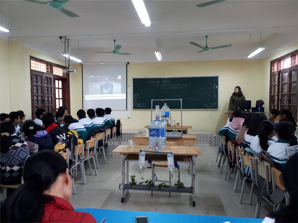 Tham dự và chỉ đạo chuyên đề có đồng chí Vũ Quang Đoàn – Hiệu trưởng nhà trường, đồng chí Nguyễn Thị Kim Sinh- Phó hiệu trưởng cùng toàn thể các đồng chí giáo viên trong tổ KHTN, tổ KHXH và tổ năng khiểu tham dự đầy đủ.Tiếp tục phát huy hiệu quả phương pháp, kĩ thuật dạy học tích cực trong các bộ môn ở các năm học trước và sự đổi mới trong năm học này, tổ KHTN xây dựng chuyên đề với nội dung " Dạy học STEM trong môn Vật lý" do cô Phạm Thị Thanh Hồng thực hiện qua “ Chuyên đề: Hệ thống tưới nước tự động, máy nén thủy lực”. Tiến trình tiết học theo bốn bước. Hoạt động 1: Mở đầu: Cho học sinh xem clip về nước thải ô nhiễm và clips về máy nén thủy lực. Hoạt động 2: Hệ thống kiến thức đã học theo sơ đồ tư duy. Hoạt động 3,4: Học sinh được luyện tập – vận dụng.
