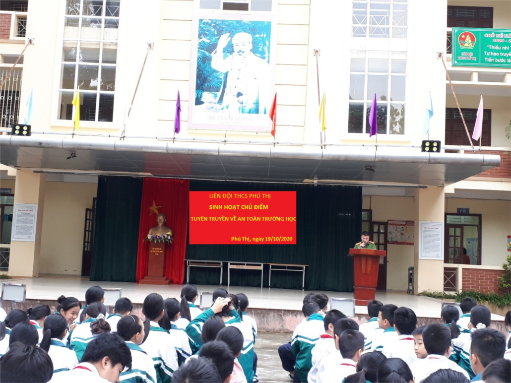 Thực hiện công văn sơ 295/GD&ĐT của Phòng GD&ĐT Gia Lâm về việc đảm bảo công tác an ninh, an toàn trường học, phòng chống bạo lực học đường. Ngày 19/10/2020 Liên đội trường THCS Phú Thị tổ chức sinh hoạt chủ điểm với chủ đề: "An toàn trường học" cho 736 học sinh. Đồng chí Nguyễn Văn Tiến - phó trưởng công an xã Phú Thị được phân công tuyên truyền cho học sinh nhà trường với các nội dung nhằm cung cấp kiến thức, kĩ năng giúp học sinh chủ động phòng tránh các nguy cơ bị xâm hại, bạo lực học đường. Tuyên truyền giáo dục học sinh ý thức chấp hành tốt pháp luật, các qui định của nhà nước, các nội qui trường học, chấp hành an toàn giao thông đường bộ, không sử dụng xe máy khi chưa đủ tuổi.