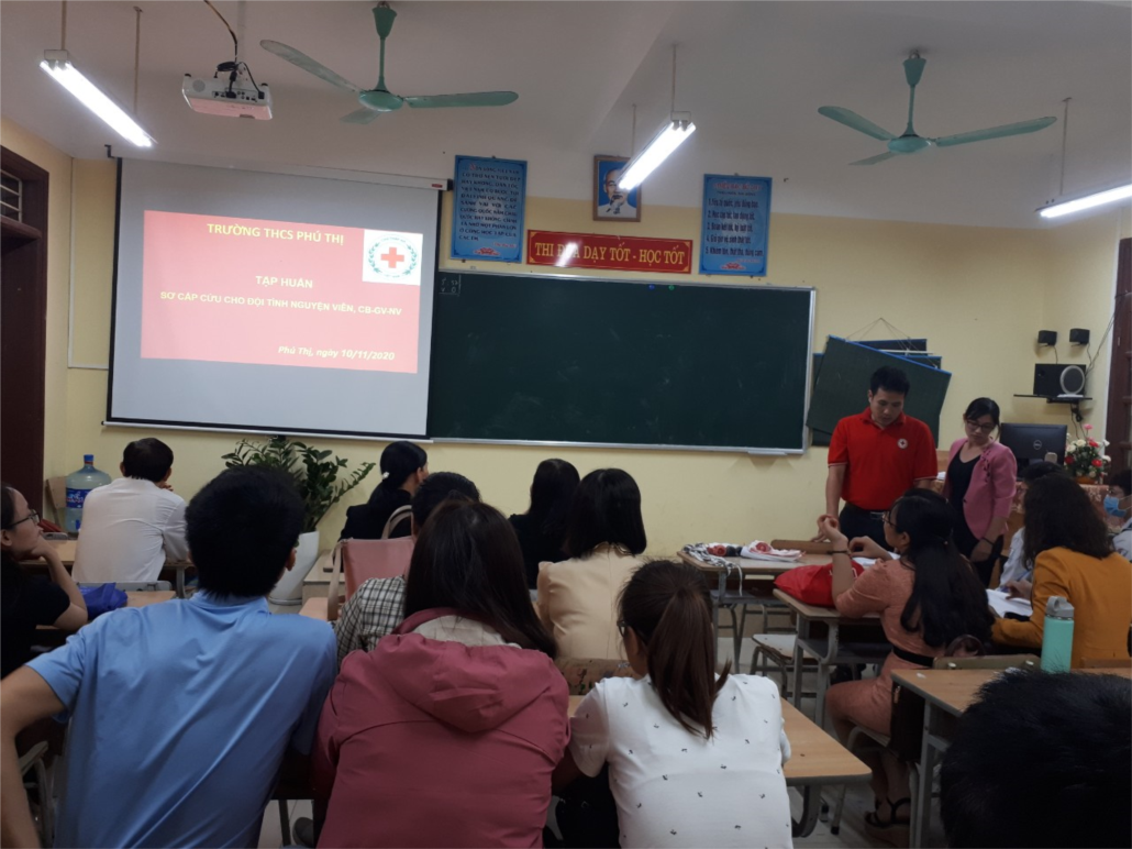 Ngày 10/11/2020, Trường THCS Phú Thị tổ chức tập huấn sơ cấp cứu cho đội tình nguyện viên, cán bộ, giáo viên, nhân viên.Tham dự buổi tập huấn có Ban Giám hiệu, cùng toàn thể cán bộ, giáo viên, nhân viên và đội tình nguyện sơ cấp cứu của trường THCS Phú Thị.
