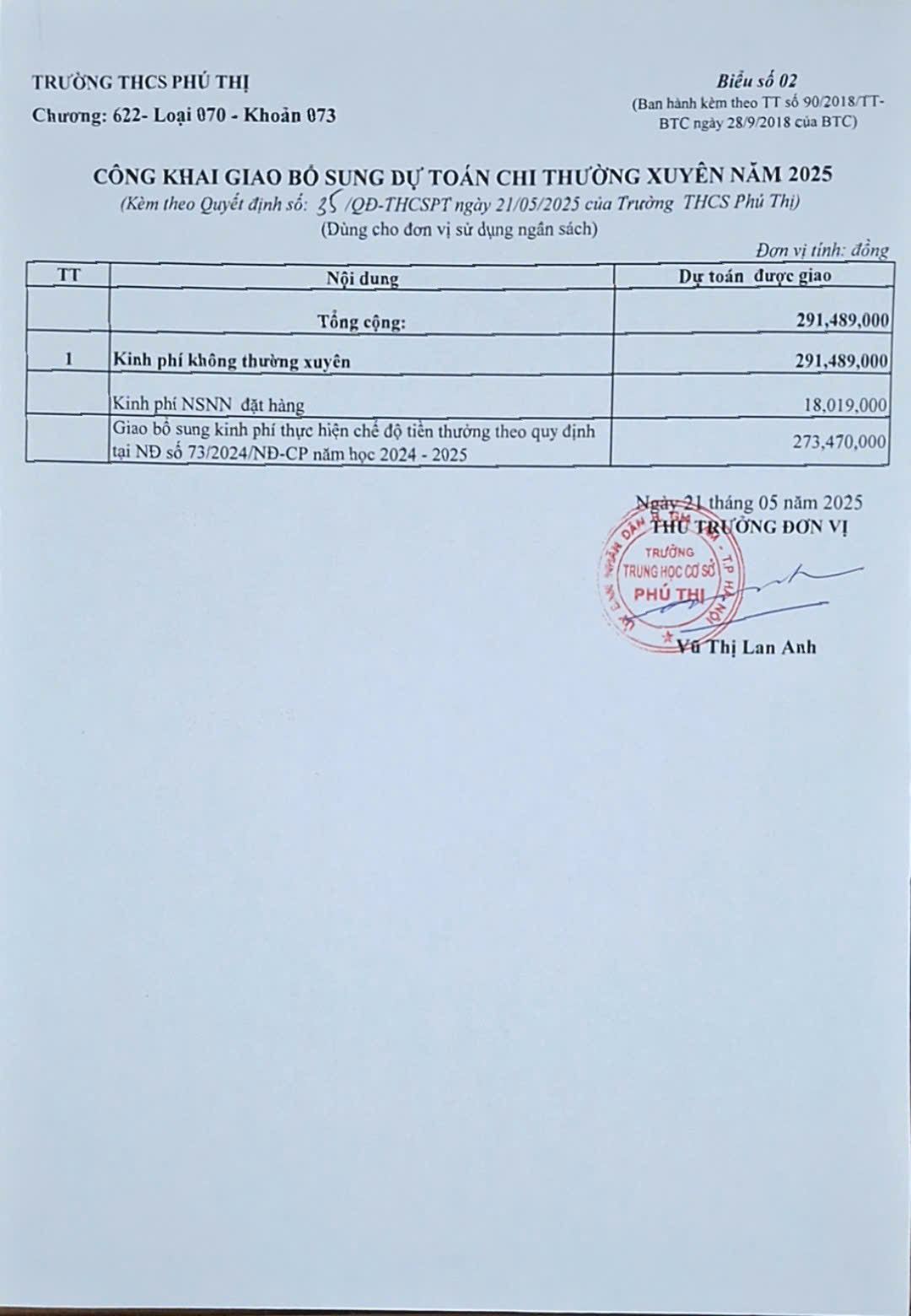 Công khai giao bổ sung dự toán thu, chi thường xuyên năm 2025