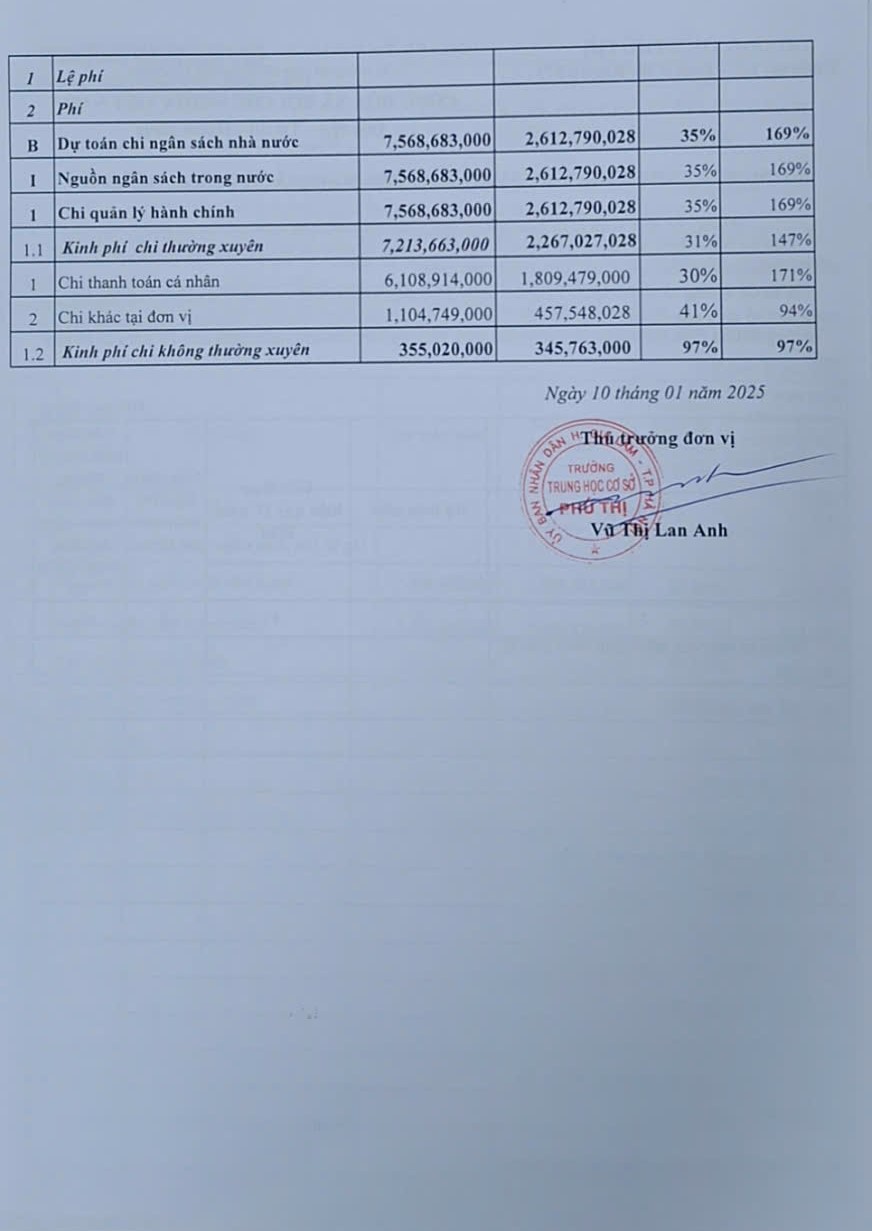 Công khai thực hiện dự toán thu - chi ngân sách quý iv năm 2024